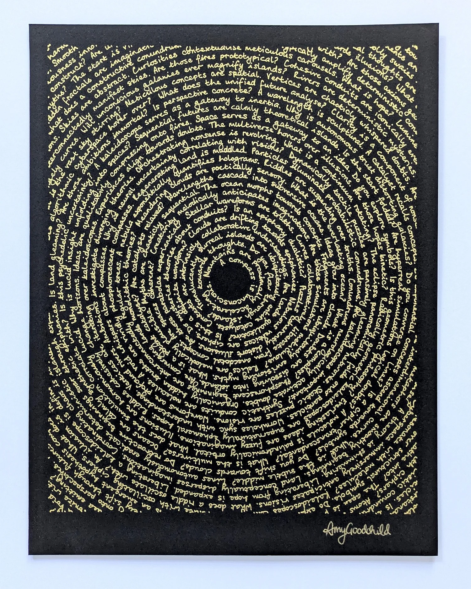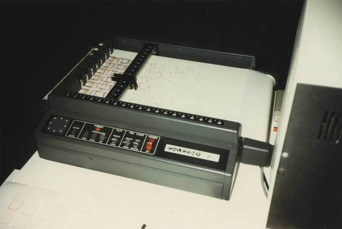 Pen plotters are still a very popular tool among contemporary generative artists, like this piece, Handwriting Spiral 2 by Amy Goodchild, who created a generative system for producing what she calls "meaningful nonsense" in her own handwriting. But remember, we shouldn't confuse the print itself as the only "art object" here, as Goodchild notes in her online store "While similar pieces may be created (from the same JavaScript code) in the future, no two will be exactly alike, and the same generated image will not be plotted twice."